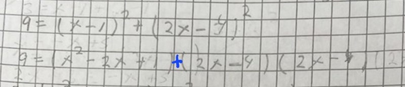 I vilka punkter skär linjen y = 2x - 3 cirkeln 9 = (x-1)2 + (y-1)2