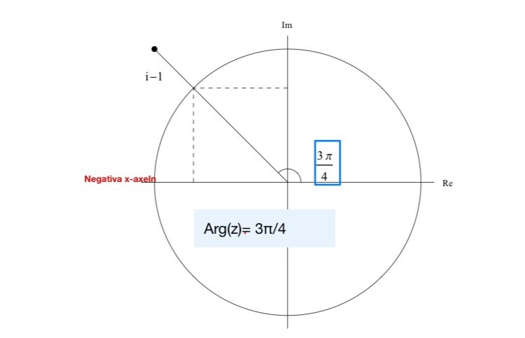 Ex. Arg(z) till z = i − 1 är 3π/4 eftersom vinkeln mellan linjen genom origo till