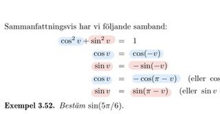 sin(x) värden: sin(π/6)=½ eller sin(7π/6)=-½
