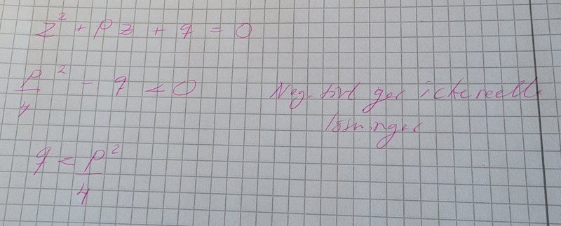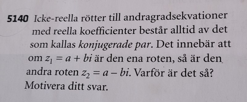 Det jag skrev i #2 däremot är tillräcklig motivering, möjligen ska man lägga till lite förklarande text, exvis att för att lösningen ska vara imaginär måste diskriminanten vara negativ och därför kan man göra som jag skrev på rad 2 i samma inlägg.