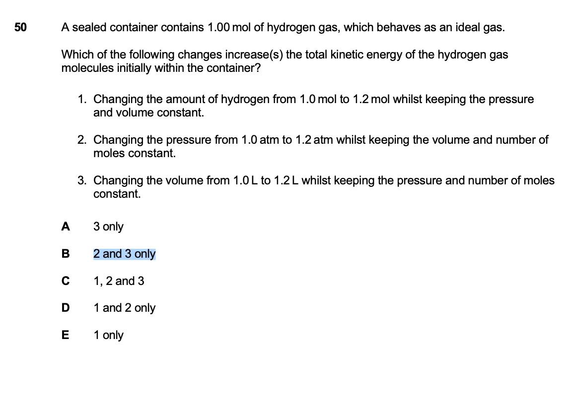 1. Kolla på ideala gaslagen pV=nRT. Vi vet att pV=konstant och även att R=konstant. Vad innebär det för T ifall n ökar? Måste T minska eller öka och vad säger det om partiklarnas kinetiska energi?