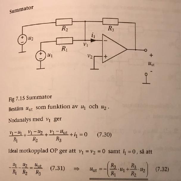Återkopplad menas då det är kopplat från uut till den inverterade ingången? och därför är v1=v2?
