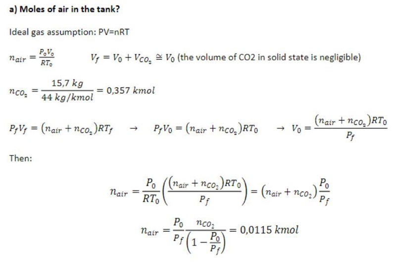 Jag får samma svar som facit genom att ställa upp ett ekvationssystem med ideala gaslagen före och efter att man tillsätter kolsyreisen. Hur fick du fram din ekvation?