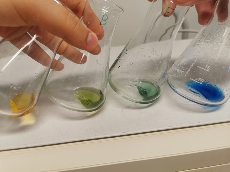 Hej. Jag ska identifiera ämnena natriumsulfat, citronsyra, glycin och natriumvätekarbonat. Jag har löst upp ämnena i vatten och tillsatt BTB för att se vad deras ph är. Detta blev resultatet: