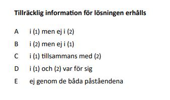 Informationen är alltså inte tillräcklig i (2) men är tillräcklig i (1).