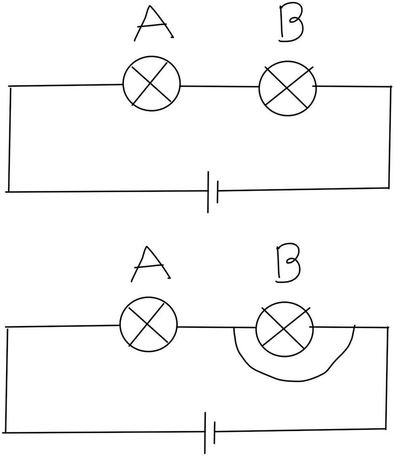 Lampa B kommer alltså att inte lysa medan lampa A kommer lysa