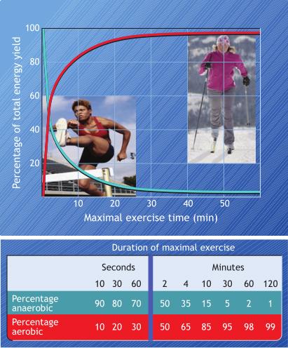 Inom fysiologi brukar man dra gränsen mellan styrka och uthållighet någonstans runt 2 minuter. Vid kortare arbete, som t.ex. 1-5 repetitioner av att lyfta något tungt, kommer större delen av energin från de anaeroba processerna. Vid längre arbete tar de aeroba processerna över.