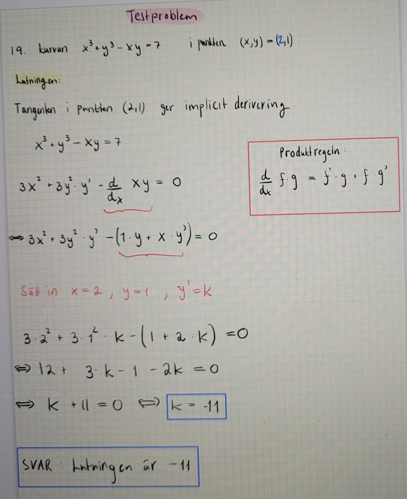 Hur ska jag få ut derivatan av x*y? Blir det y*xy'?