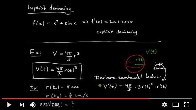 Han förklarar hur man deriverar båda sidor - och på höger sida ska man ta med även r'(t) som man inte känner till. MEN varför måste man inte göra samma även på vänster sida?
