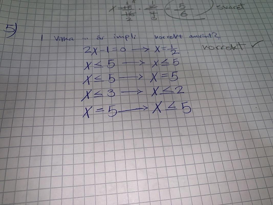 Nu har vi olikheter, rita upp en tallinje där du markerar ut hela mängden för dina två utsagår (påståenden) och kika, är det sant att den vänstra olikheten implicerar den högra?