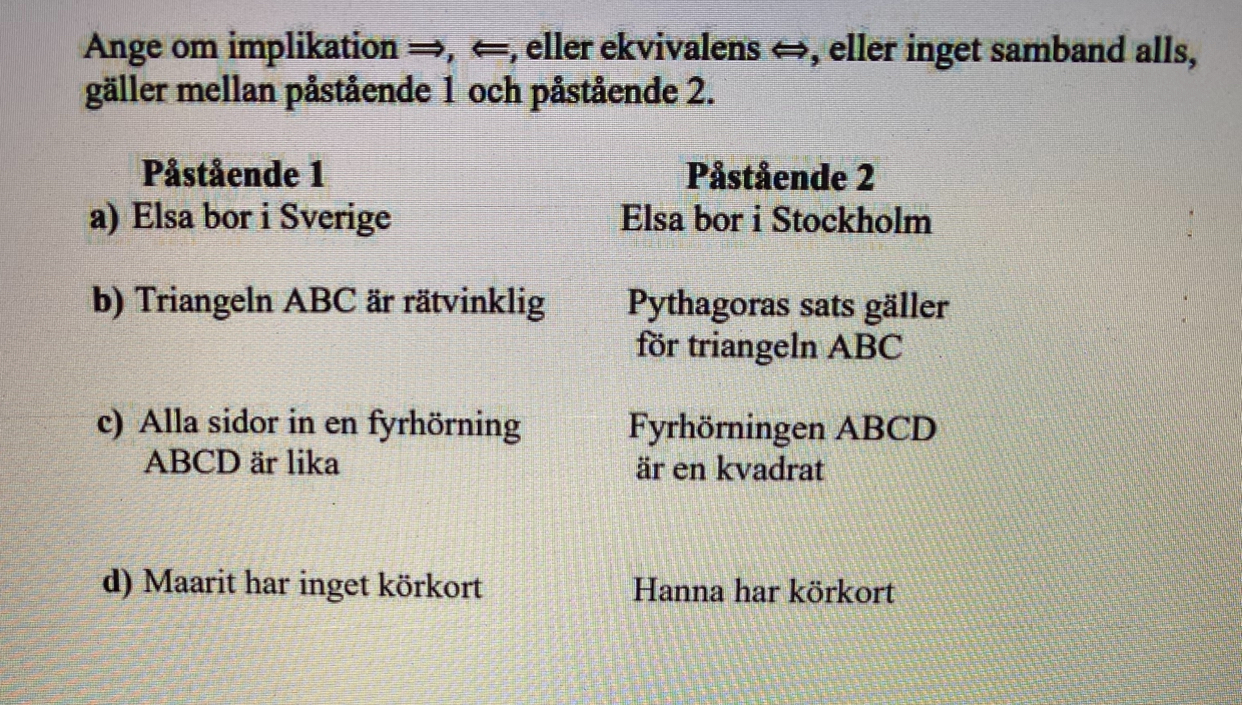 Implikation & ekvivalens uppgift jag har svårt att tolka texten