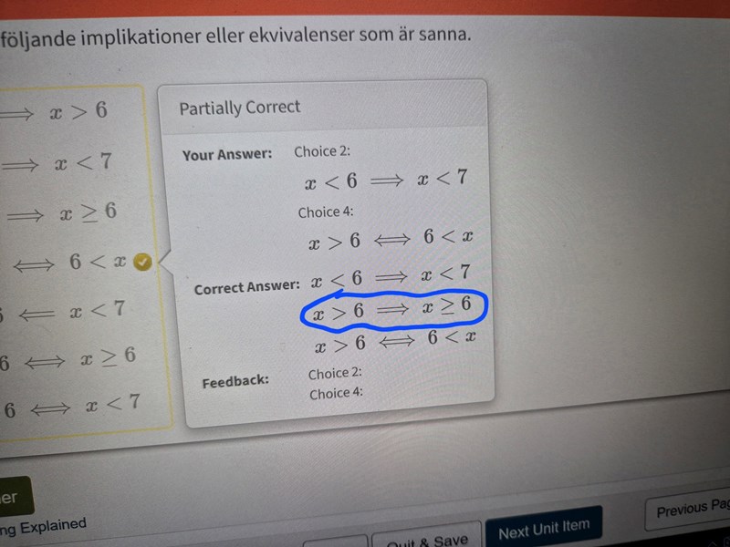 Innebär inte x>6 att x är större än 6? X skulle väl också kunna vara lika med 6, men hur kan jag rimligt dra den slutsatsen?