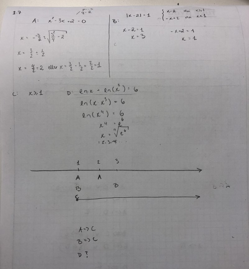 Förstår att A respektive B implicerar C då de ligger inom intervallet. Men inte hur jag ska tänka med D? Det är ju tre rötter, men hur räknar jag ut ekvationen utan räknare?