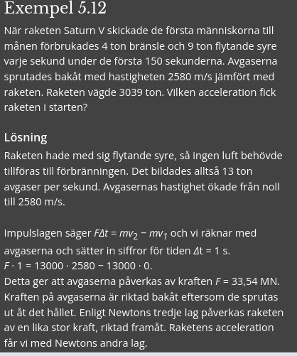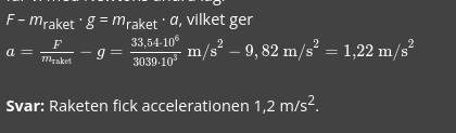 Men detta är förutsatt att raketen åker uppåt. Sedan kommer tyngdkraften från raketen och inte gaserna så någonting måste vara fel. Vad är då kraften uppåt?