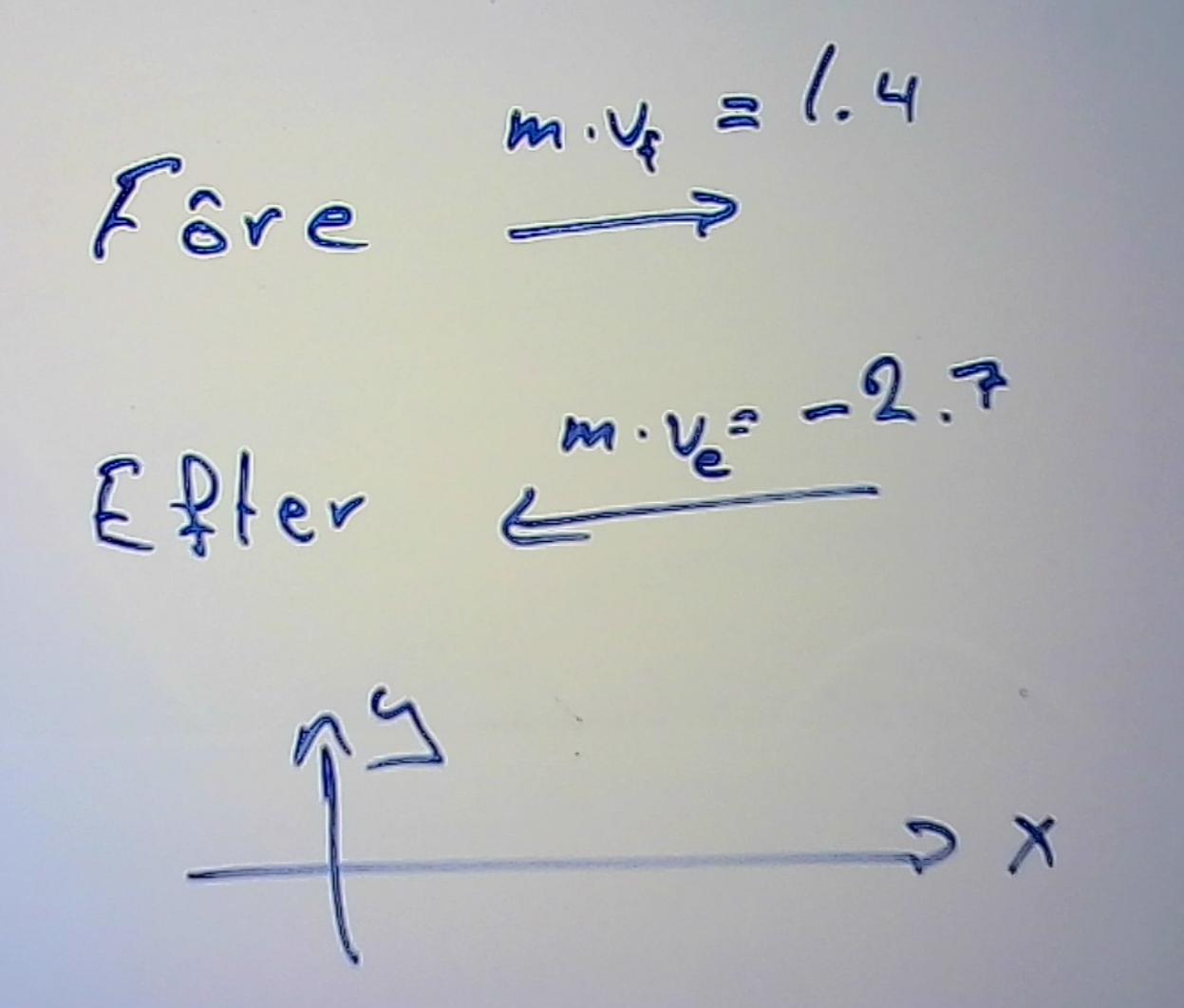 Se bilden nedan, före är rörelsemängden 1,4, efter är rörelsemängden -2,7