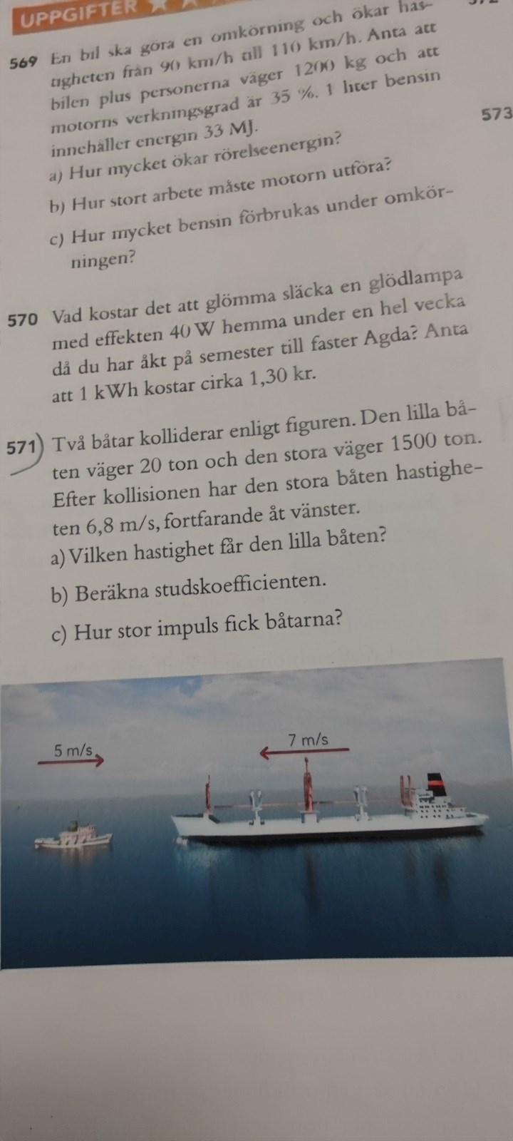 Passa parenteser och negativa tal! Den stora båtens fart lär ju inte nästan tredubblas vid kollisionen.