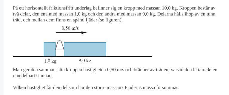 Har du lärt dig om rörelsemängdens bevarande? Dvs rörelsemängden innan frikopplingen är den samma som rörelsemängden efter om vi betraktar systemet med den totala massan 10kg