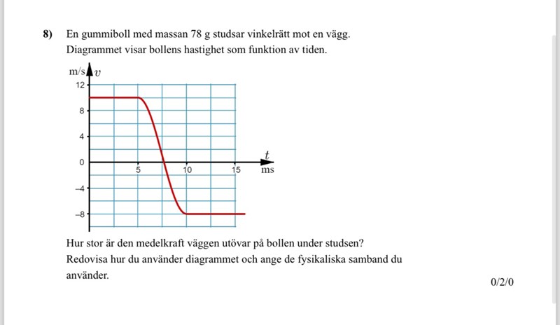 Det är inte från boken, det är bara en övningsuppgift så jag har ingen mer information om frågan. Det enda jag inte förstår är hur jag ska tolka diagrammet, t.ex hur lång tid studsen tog. Om jag kan tolka diagrammet så kan jag använda mig av rörelsemängd och impulslagen