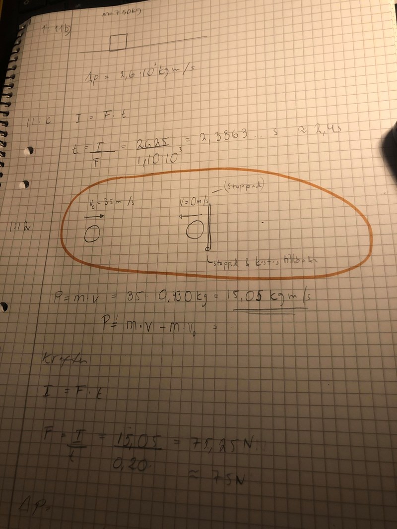 Borde inte v0 vara 35 m/s och V vara 0 m/s enligt det jag ringat in?