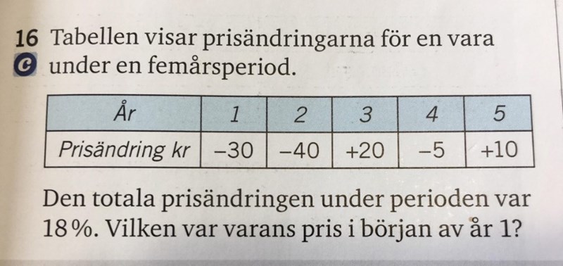Ingen fara! Nja, det blir rätt. Eftersom varan har minskat i pris är förändringen -18%, tekniskt sett -0,18, men det är vanligare att bara skriva "18% förändring". Förändringen är 45 kr, och procentsatsen är 18%, och det hela blir då 250 kr. :)
