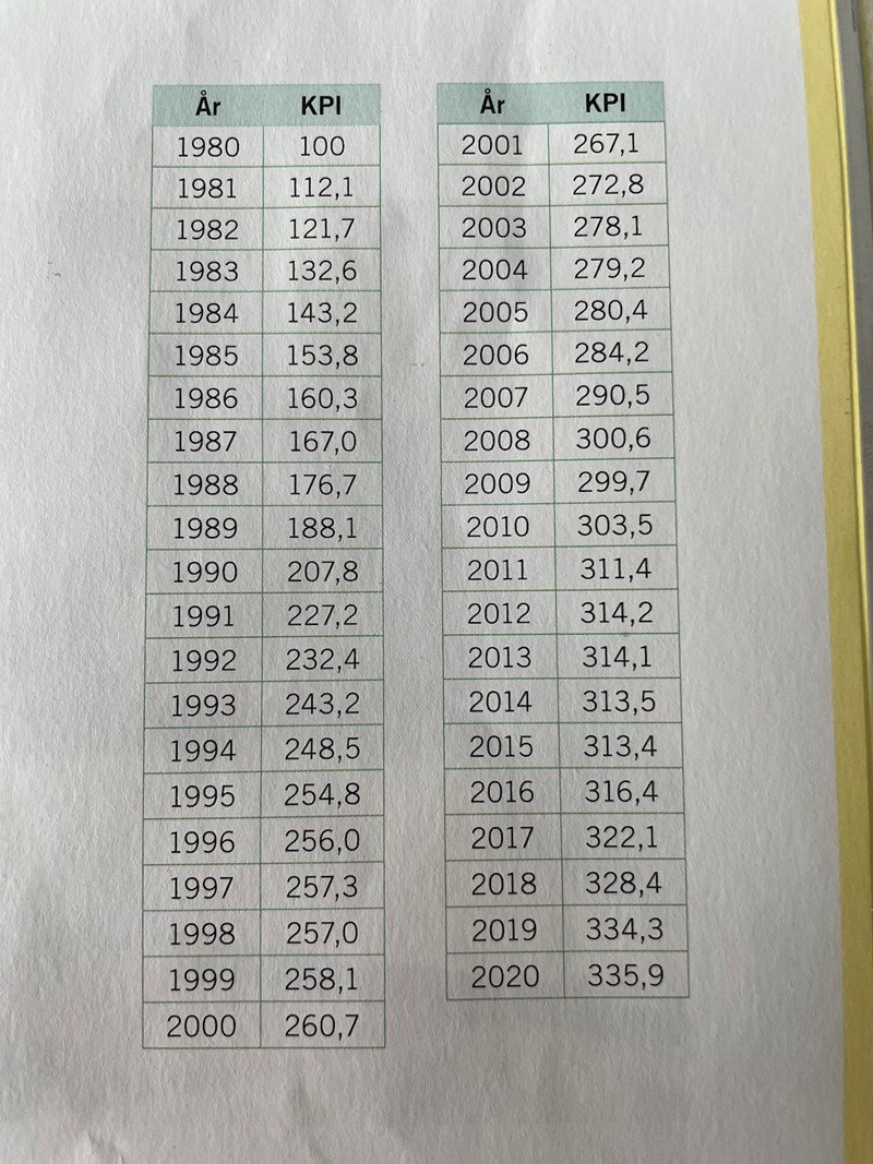 Hennes lön har en större förändringsfaktor än KP index. Alltså måste hennes reallön ha ökat.