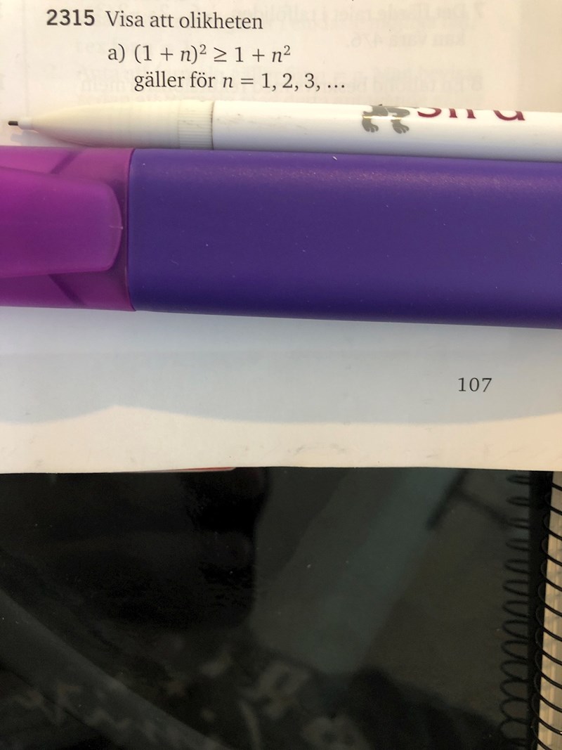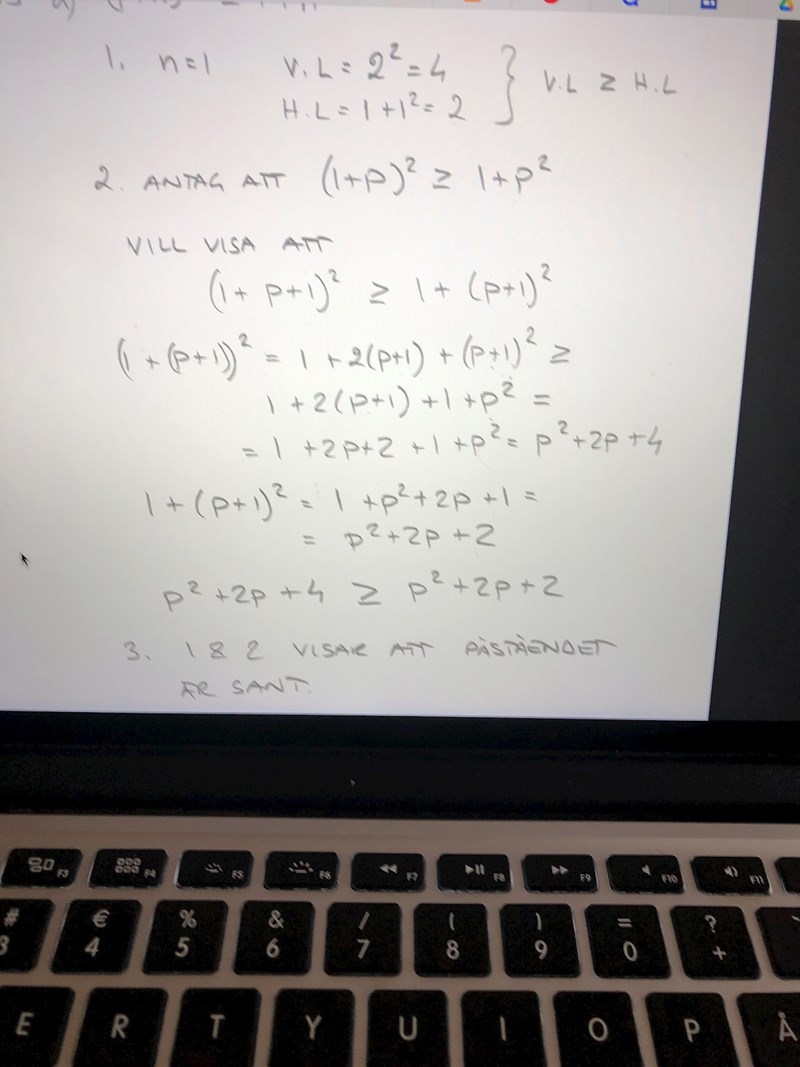 Om de är korrekta så betyder det att Vl>Hl och beviset är färdigt. Jag har hittat en hemsida med lösningar till dessa uppgifter och där står det kanske ett annat sätt att lösa uppgiften på. Jag visar lösningasförslaget med en bild.