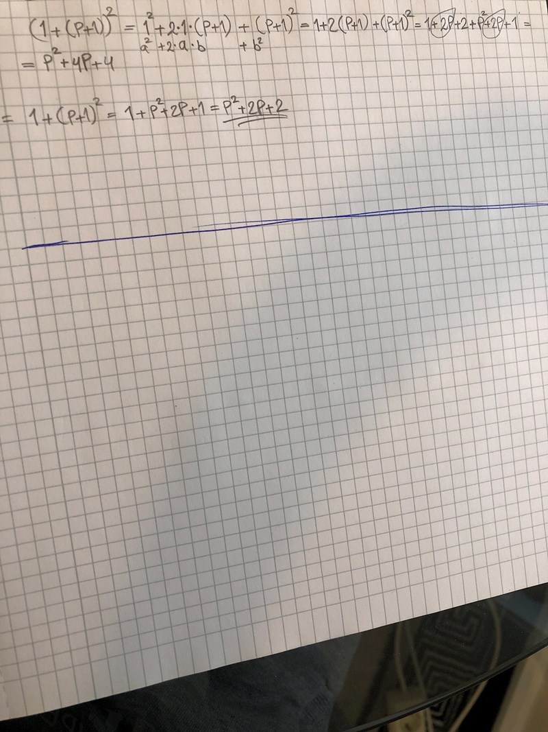 Hur kommer man fram till att (p+1)^2 = 1+p^2 ?