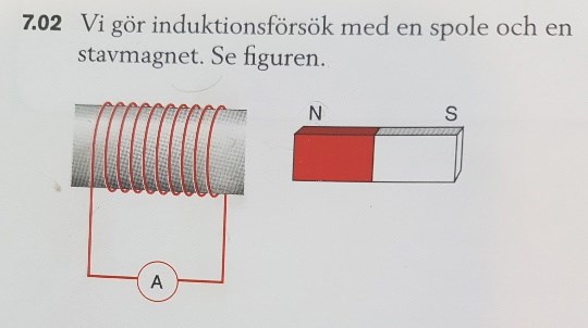 Vi låter stavmagneten närma sig spolen med nordpolen längst fram. Varför induceras det en spänning i spolen ?