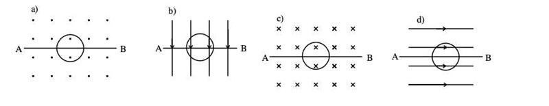 Hej, jag är på en fråga som lyder: I vilket/vilka fall induceras en spänning över slingan, som roterar kring AB.