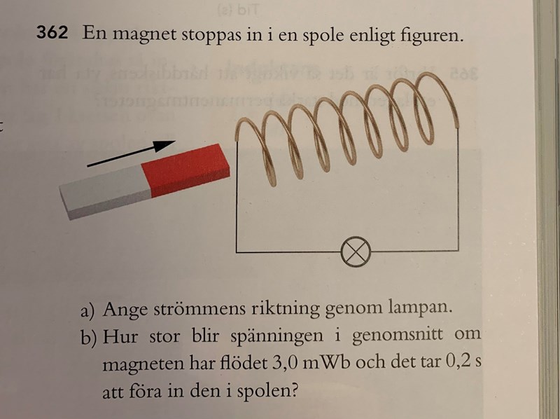 Jag behöver hjälp med a uppgiften. Jag vet att magnetfältet pekar åt höger, bort från nordpolen på magneten men sen kommer jag inte vidare.