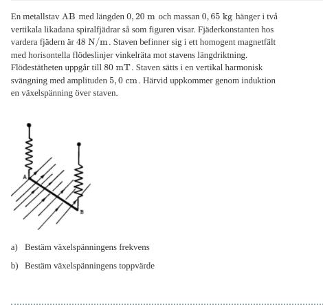 När det gäller fråga b menar du att man kan använda sig av vinkelhastigheten ω= 2*pi*f och sen beräkna den maximala hastigheten med hjälp av formeln v max= ω.A ?