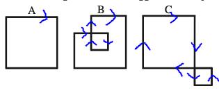 Om det är så att strömmen går medurs i den stora slingan så går den moturs i den lilla. Detta gäller i figur C