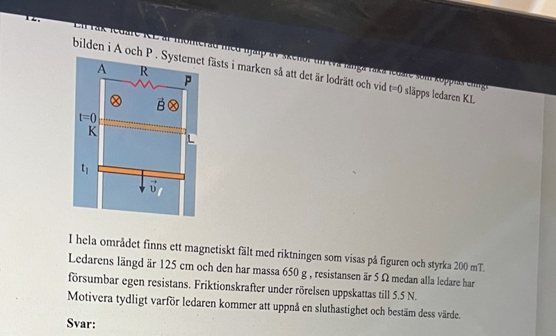 Ta och rita ut hur krafterna verkar på staven. Jordens dragningskraft, kraft från ström och magnetfält samt friktionskraften.