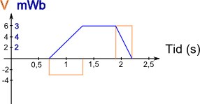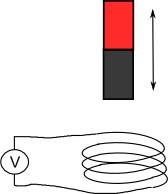 Magneten åker in och sedan ut ur spolen. Spänningen över voltmetern beror på derivatan på det magnetiska flödet d.v.s. hur snabbt det förändras, inte hur stort det är.