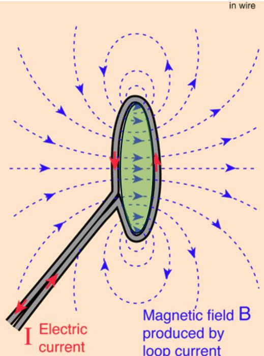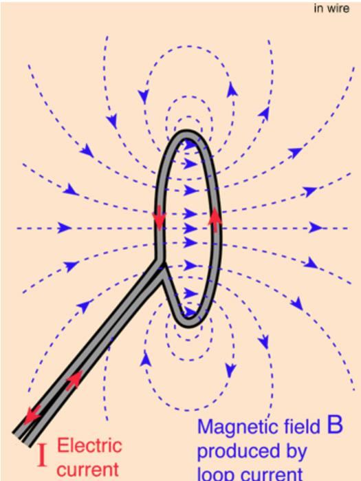 Om du böjer ledaren till en loop så kommer magnetfältet som strömmen i ledaren skapar, att se ut på detta sätt istället: