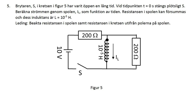 Initialt (t=0) kan man betrakta induktansen som "ett avbrott".