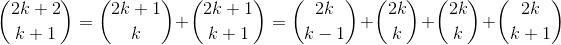 och då kanske det är användbart att använda kombinatoriska identiteter som såsom Pascals identitet för att skriva om uttrycket att du får uttryck på formen med mindre då du kan utnyttja att du då vet att de är mindre än .
