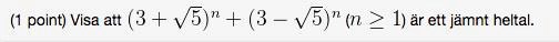 Hej Tomast80! Tack för snabbt svar. Ber om ursäkt men är väldigt ny till detta moment inom matten, kan du förklara ytterligare vad du menar med detta? Hur ska jag tillämpa binomalsatsen i mitt fall? Jag ser det som att jag har två termer att betrakta, vet ej hur rimligt jag tänker men hur ser du på detta?