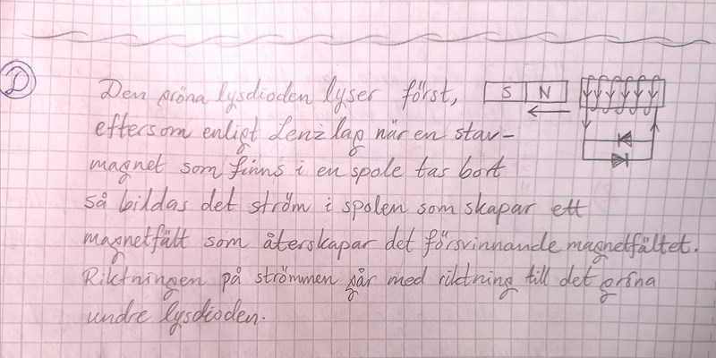 JohanF skrev:Ja, du har rätt. För att bli glasklart så skulle du kunna rita några fältlinjer från stavmagneten, som kommer att ersättas med fältlinjer som spolströmmen skapar.