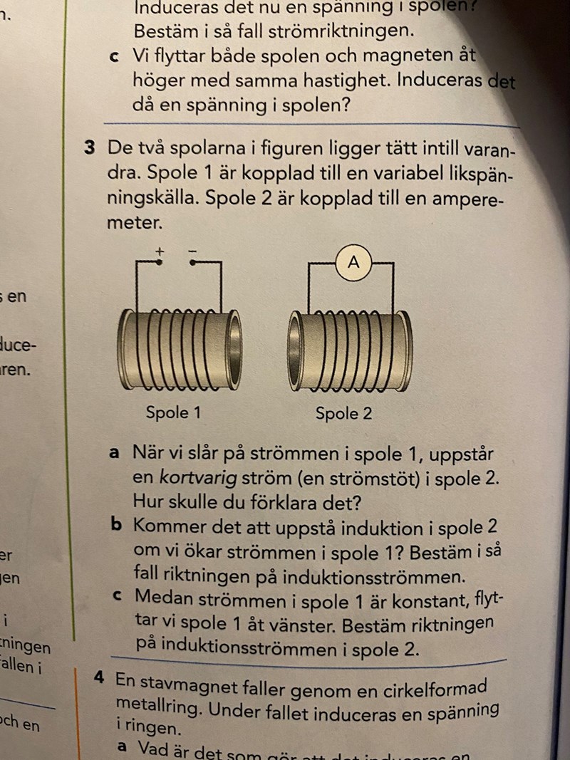 Tack för en bra förklaring. Är med på att det blir en minskande fältstyrka när spole 1 flyttas till vänster från spole 2. Men hur tar jag reda på vilket håll induktionsströmmen går åt i spole 2? Blir det åt höger eftersom spolen vill "hindra" förändringen? :)