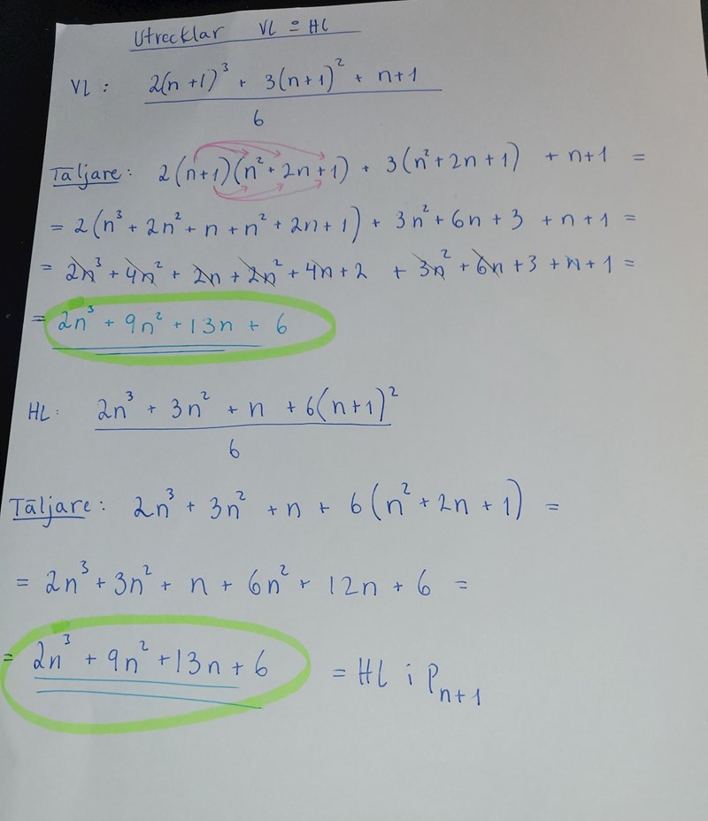 Jo, tänkte samma sak, men får problem hur jag ska skriva om det. Jag vet inte hur jag kan förändra 2n3 + 3n2 + n.