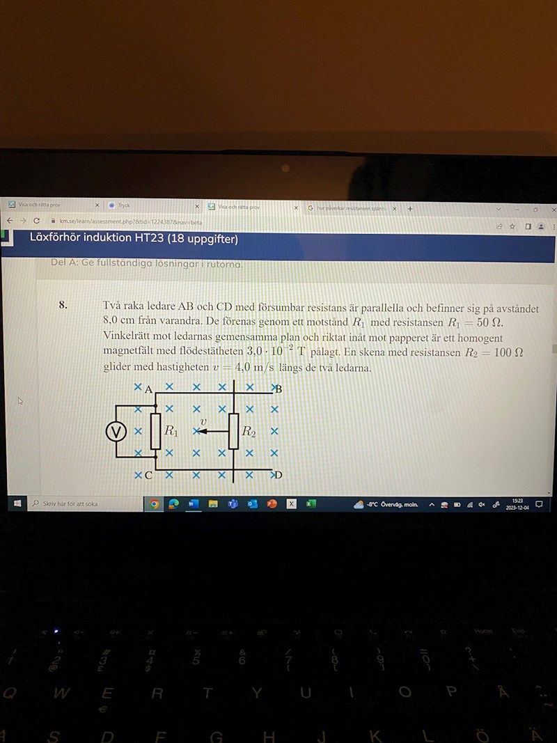Hej behöver hjälp med uppgiften som ni ser på bilden. Fråga b) lyder följande: Vad visar en voltmeter inkopplad så som figuren visar.