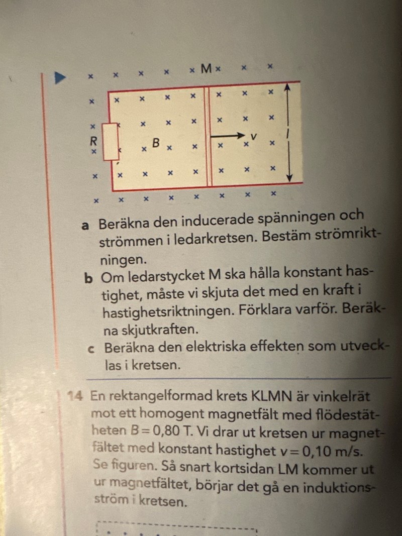Det som rör sig till vänster med V (M) är en ledarkrets som ligger vinkelrätt mott ett homogent magnetfält.