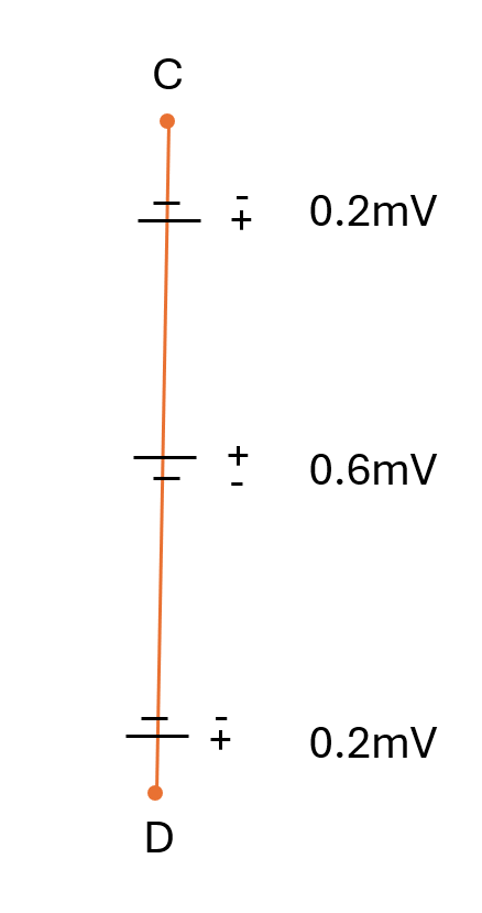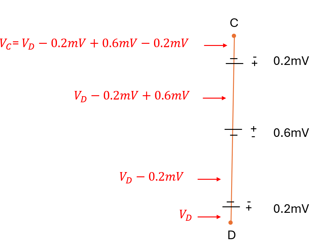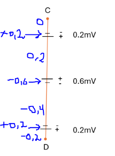 Ifall man räknar ihop spänningsfallen mellan C och D i det här fallet, så blir det istället +0.2+0.6+0.2=1.0mV