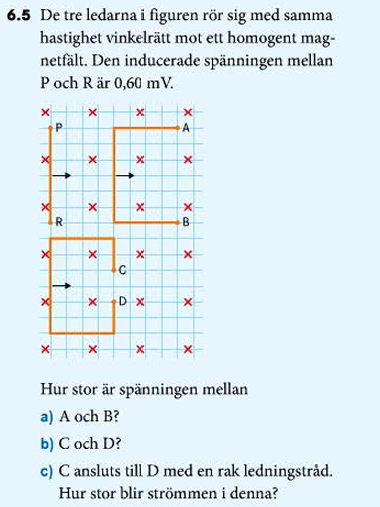 Jag fattar a) där spänning bör vara samma 0,60mV eftersom det är den vinkelräta delen av ledaren som inducerar spänning och det är samma som i läget som vid PR.
