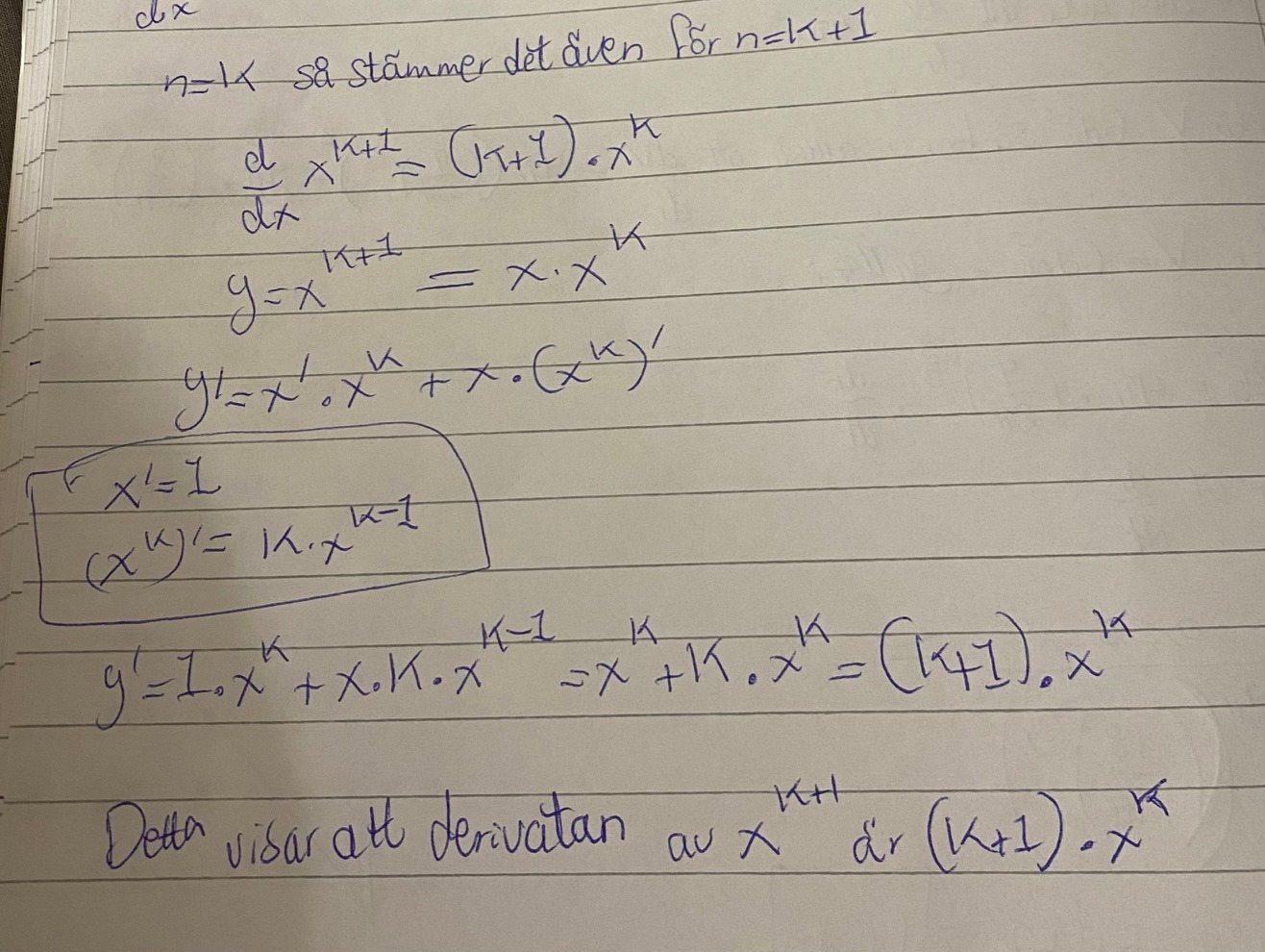 bevisa med induktion att funktionen där n är ett positivt heltal, har derivatan: y'=