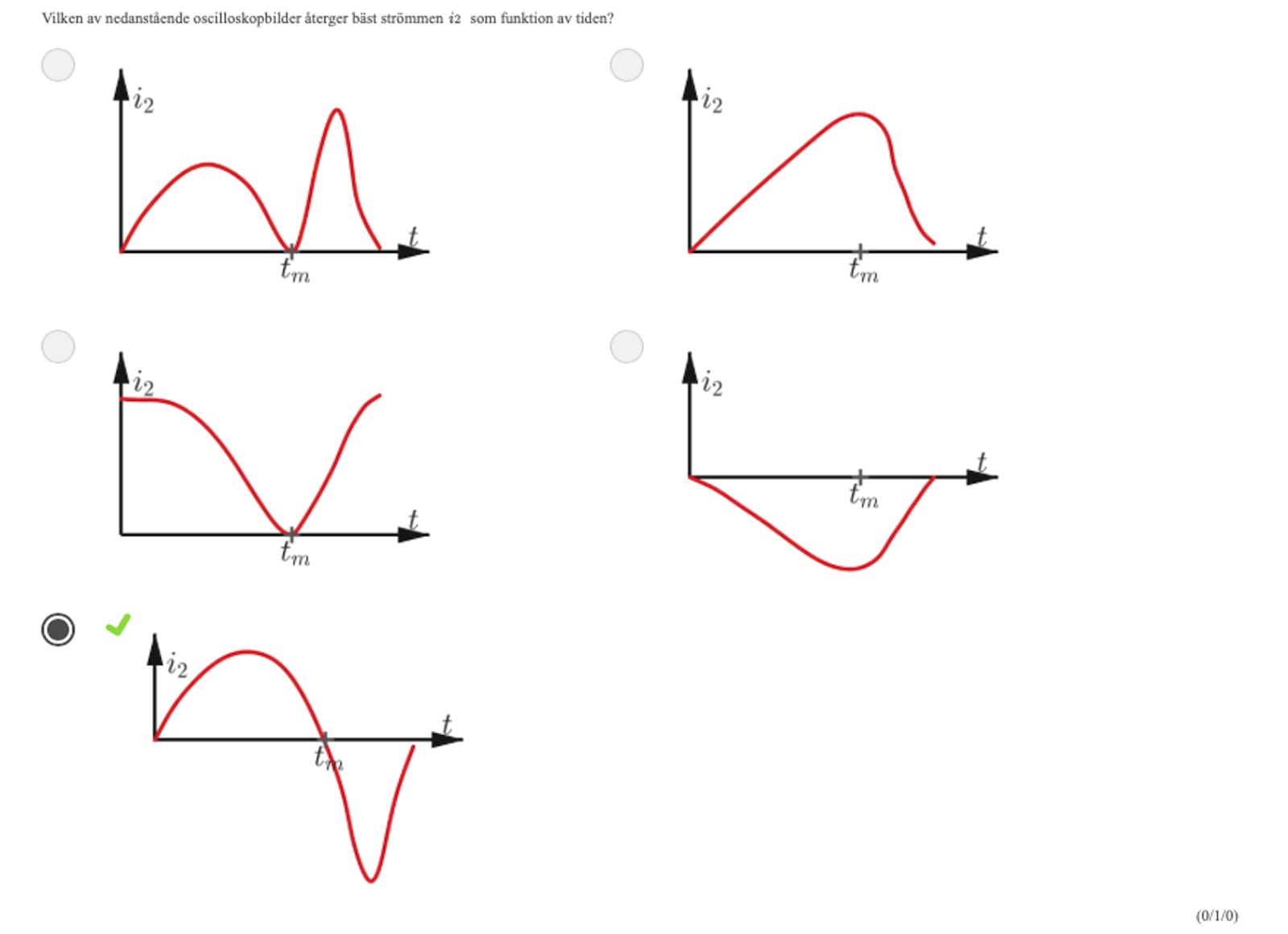 Men som sagt, det är på ett sätt oviktigt för att lösa uppgiften, eftersom det bara fanns ett alternativ där I2 byter riktning när I1 har ett nollställe.