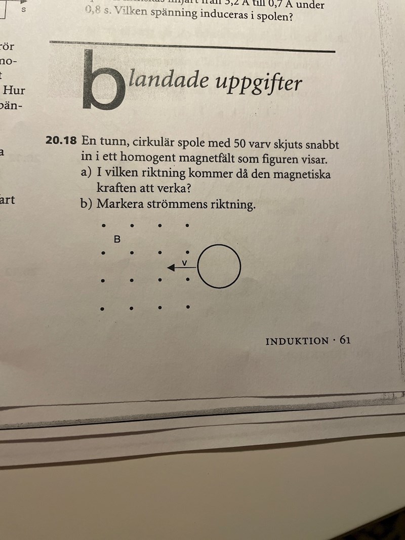 Strömriktningen tar jag också fram först i mitt resonemang. Konstigt hur de formulerade frågan med a) och b) kan jag tycka, eller vet du något sätt där man först får fram kraften och resonerar fram strömriktningen från den?