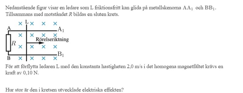 likaså eftersom det är friktionsfritt omvandlas all mekanisk effekt till elektrisk effekt i kretsen. Pmekanisk=Pelektrisk