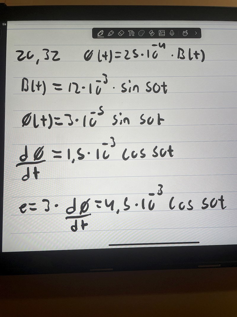 e = 3*25*10-4*100(pi)*12*10-3*cos(100(pi)t) = 28,26*10-3(cos(100(pi)t)